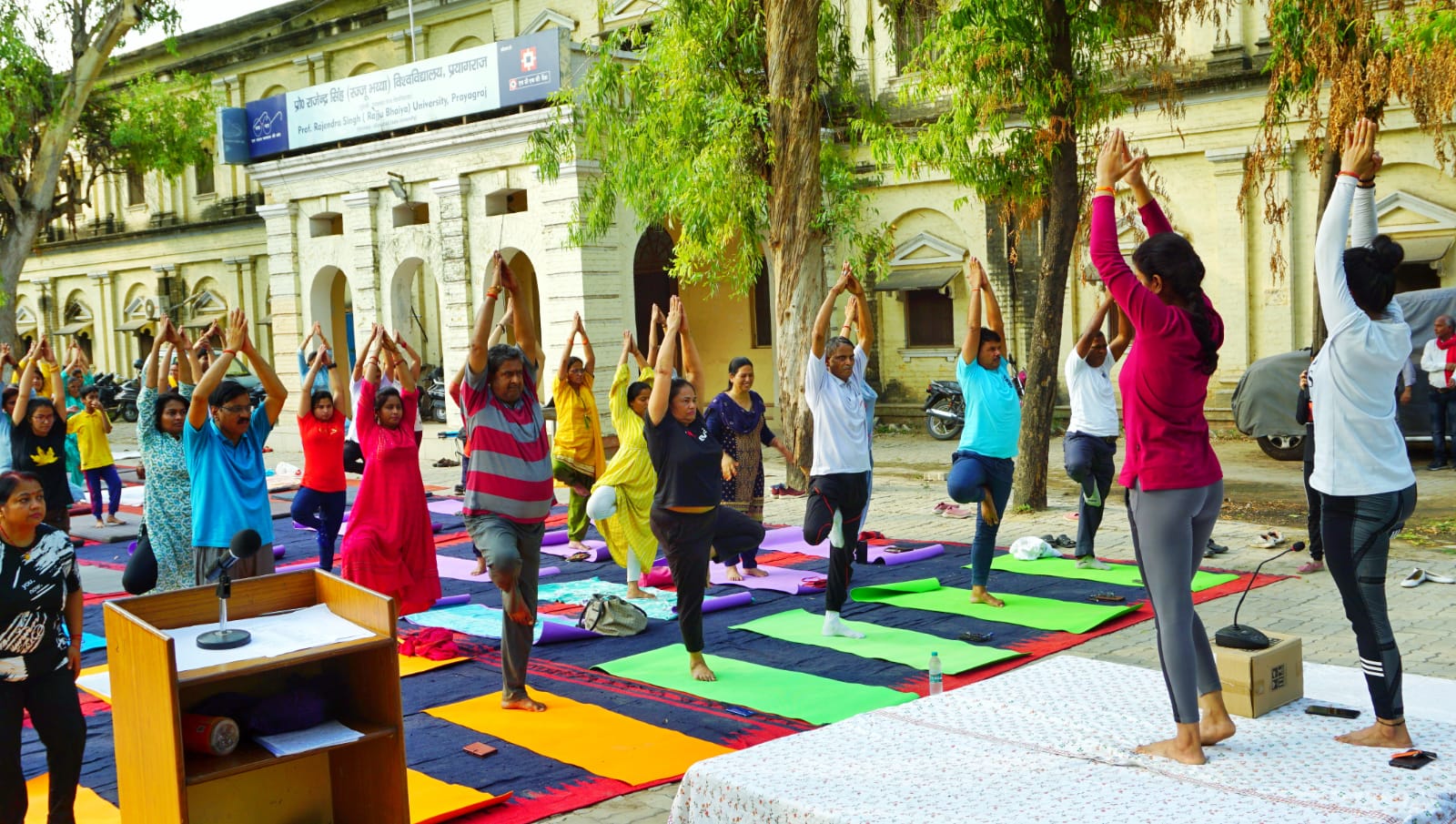वसुधैव कुटुंबकम की भावना को मजबूती प्रदान करने एवं मानव कल्याण के उद्देश्य से एवं आजादी के अमृत महोत्सव के अवसर पर इंस्टीट्यूट आफ एडवांस्ड स्टडीज इन एजुकेशन प्रयागराज ने आठवां अन्तर्राष्ट्रीय योग दिवस के उपलक्ष्य में संस्थान की प्राचार्य /अपर शिक्षा निदेशक ललिता प्रदीप के निर्देशन में दिनांक 17.06.2022 से 21.06.2022 तक संस्थान के परिसर में भव्य योग शिविर का आयोजन किया गया है। जिसका उद्घाटन संस्थान के प्राचार्य/अपर शिक्षा निदेशक, ललिता प्रदिप, ने दीप प्रज्वलित करके किया एवं संस्थान के प्रोफेसर गायत्री, प्रोफेसर संतराम सोनी, रीडर अशोक नाथ तिवारी, रीडर कमलेश बाबू एवं रमेश तिवारी ने मां सरस्वती की प्रतिमा पर माल्यार्पण किया। सरस्वती वन्दना एवं प्रार्थना गीत श्रीमती अमिता सिंह, मीनाक्षी पाल, डॉ रूपाली दिव्यम, स्मिता जायसवाल द्वारा प्रस्तुत किया गया। मंच का संचालन स्मिता जायसवाल ने किया जा रहा है। योग प्रशिक्षक श्री सदानंद, श्री सन्तोष सिंह(उ0प्र0 योग एसोसिएशन) डा0 दीप्ति योगेश्वर(एन0सी0सी0जेड उ0प्र0 प्रयागराज), श्री विक्रांत त्रिपाठी (आनन्द योगालय प्रयागराज) एवं कु0 रुचि गुप्ता (मण्डल अध्यक्ष प्रयागराज मण्डल प्रयागराज उ0प्र0 योग एसोसिएशन) ने विविध आसन के साथ सूर्य नमस्कार, भ्रामरी ,कपालभाति आदि का प्रशिक्षण दिया जा रहा है, जिसमें प्रयागराज जनपद के लगभग 100 से अधिक प्राथमिक विद्यालय के शिक्षक- शिक्षिकाओं ने प्रशिक्षण प्राप्त किया कार्यक्रम को सफल बनाने में श्रीमती अमिता सिंह, श्रीमती डी आबिदी, श्री उपेंद्रनाथ सिंह, श्री रणजीत, डा0 रूपाली दिव्यम् श्रीमती स्मिता जायसवाल, श्री विशाल गौरव, श्री अरविन्द साहू एवं श्री यशवंत कुमार ने महत्वपूर्ण भूमिका का निर्वहन कर रहे है।